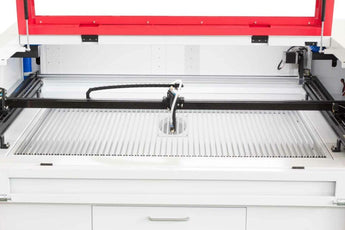 The laser machine can be equipped with single or dual 100W, 130W, or 150W glass CO2 laser tubes, all with great cost performance ratios. (Dual laser systems include two cutting heads, allowing you to cut or engrave twice as much material in the same amount of time.)