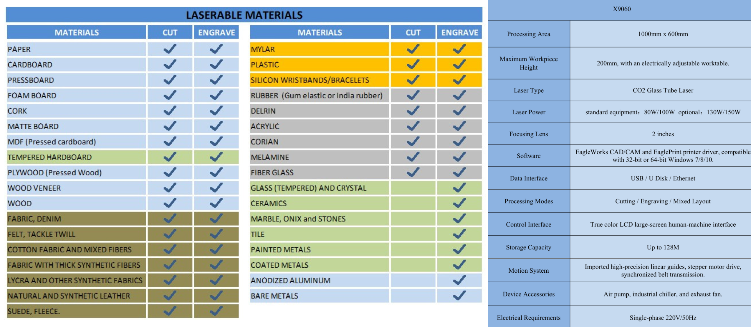 The X-9060 can be equipped with an 80W or 100W CO2 glass tube laser, both offering high cost-effectiveness.