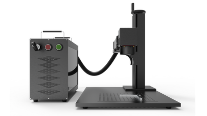 This compact laser marking machine has a very small footprint, designed for laying on a desktop with a computer beside.