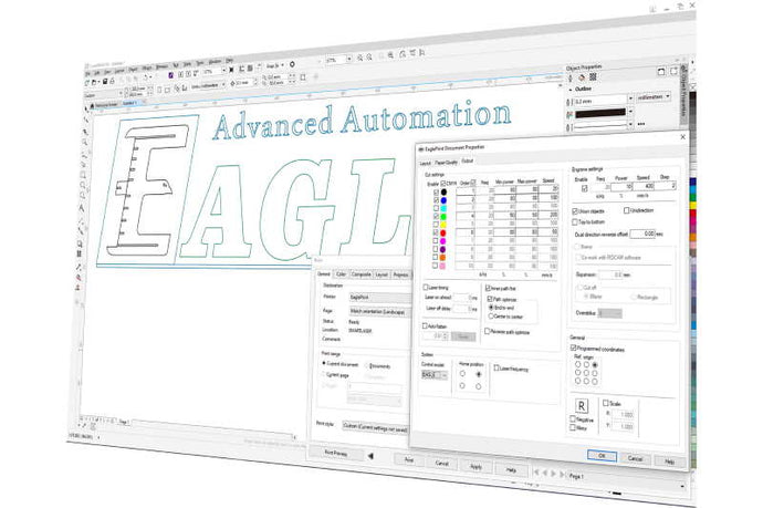 - Your machine comes with EagleWorks, a complete software solution for creating, editing, optimizing, and processing laser cutting and engraving patterns. It allows for seamless integration with CAD or illustration programs, enabling efficient design, layout, and processing control.