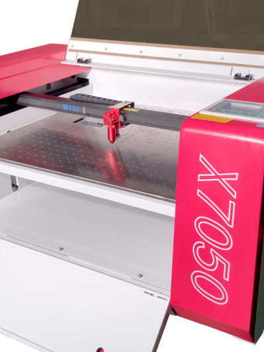 The X-7050 offers the perfect introduction to high quality laser engraving and cutting for the hobbyist, small business, or production facility. This machine comes standard with an air-cooled, metal CO2 laser tube for extremely high-resolution engraving and enough power to cut through over 3/16″ of acrylic. The variable height working area (Z-axis) on this machine allows you to work on material over 6″ tall. This machine also comes with a proprietary printer driver and USB connection to interface directly with your desktop or laptop computer.